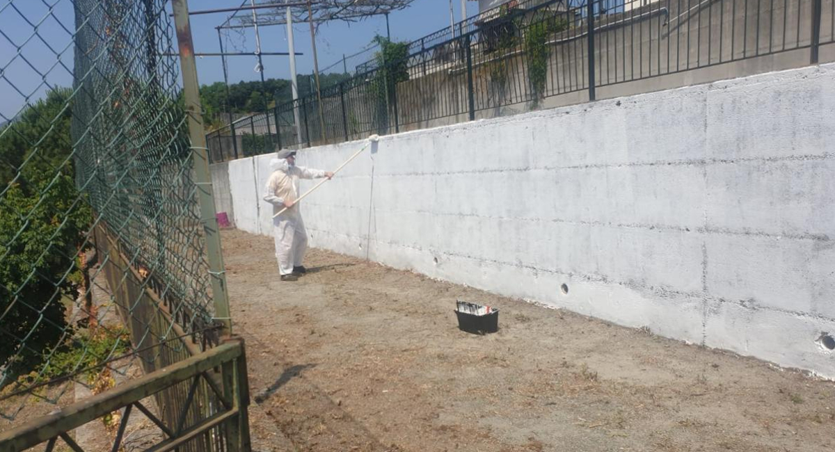 Si va dalla pulizia dei vari vialetti e spazi, al taglio dell’erba (che non appena finisci è già ricresciuta…), a piccoli interventi edili, alla preparazione di quanto può servire ai progetti imminenti (es. preparazione del campo da beach volley per il Campus sportivo dei bambini, posa del primer bianco sul muraglione che fungerà da “lavagna” per il corso di writing) e potremmo ancora continuare a lungo.